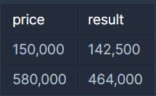 discount_rates = {500000: 0.8, 300000: 0.9, 100000: 0.95, 0: 1}