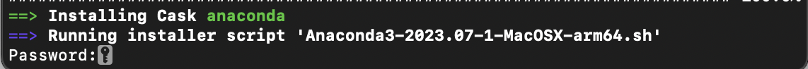 위와 같은 명령어를 입력하고 설치하다보면 패스워드 입력하라고 나오는데 맥북 패스워드 입력해주면된다